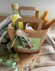 … Geschenkkörbe mit unterschiedlichen Themen nach Wahl (z. Bsp. Italienischer Korb mit Spaghetti im handgearbeiteten Säckchen, Olivenöl, Balsamico oder Wellness pur usw.)